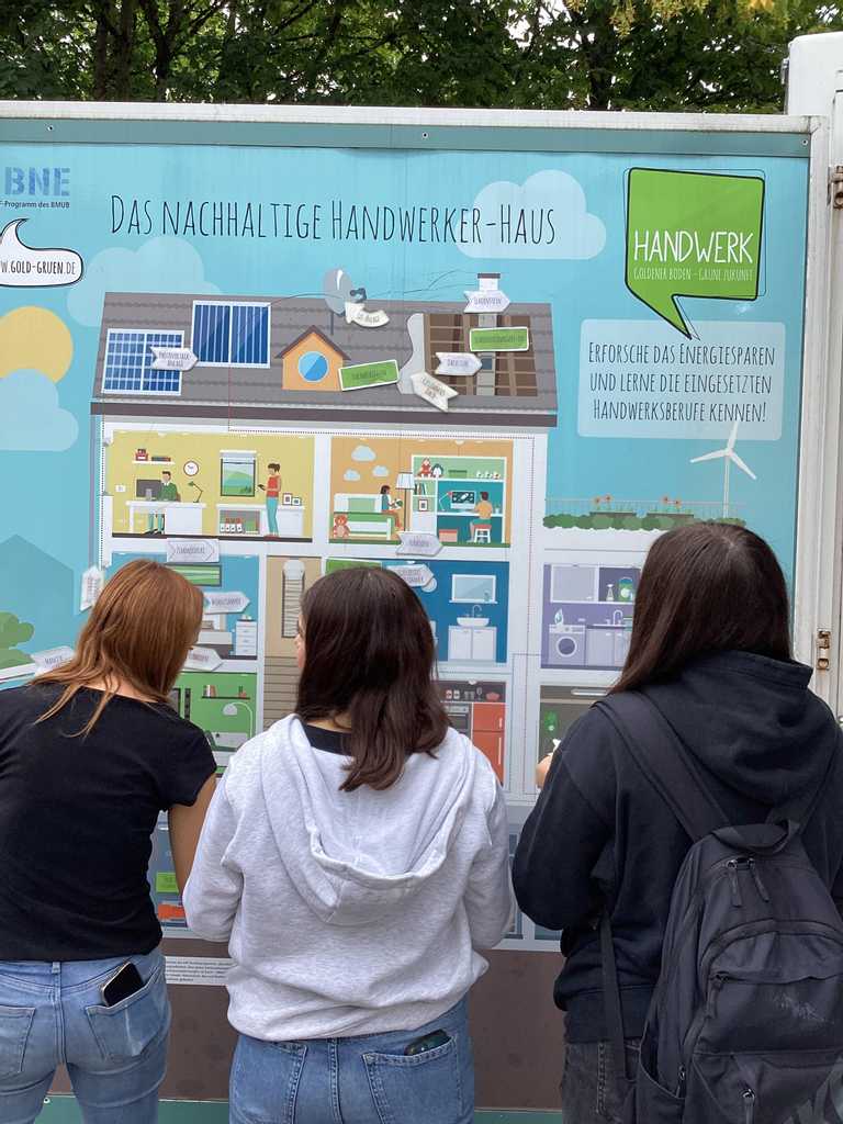 Die interaktiven Stationen erforderten Teamarbeit, Problemlösekompetenz und technisches Verständnis. Besonders im Fokus standen dabei das Bau- und Ausbaugewerbe, Elektro- und Metallgewerbe sowie neue technische Entwicklungen. Ob beim Brückenbau, bei einer Hauskonstruktion oder bei Simulator-Übungen zum Schweißen – die Aufgaben machten neugierig und führten direkt zu Fragen, welche Berufe sich hinter diesen Tätigkeiten verbergen.