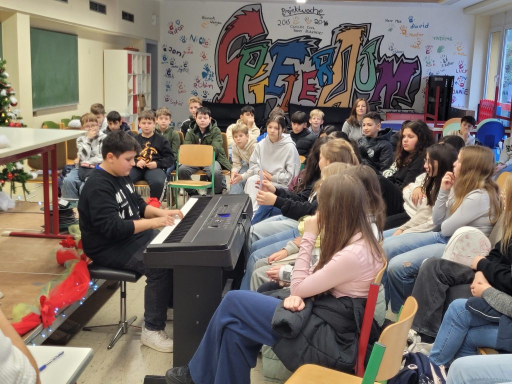 Auch in diesem Schuljahr fand der Vorlesewettbewerb der 6. Klassen an der Ernst-Barlach-Realschule plus im weihnachtlich geschmückten Spieleraum statt.