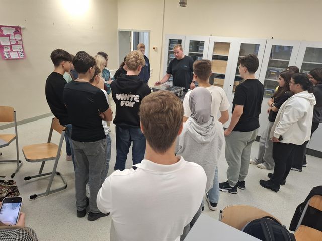 Am Donnerstag, 28. August 2025, durfte die Ernst-Barlach-Realschule plus die Vertreter der Firma Voestalpine willkommen heißen. Frau Hahn, Pascal, Eric (ein ehemaliger Schüler der Schule), Michael und Martin stellten den interessierten Schülerinnen und Schülern das international erfolgreiche Unternehmen vor.